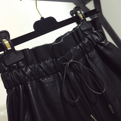 Belted Tie Casual PU Leather Shorts