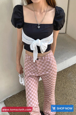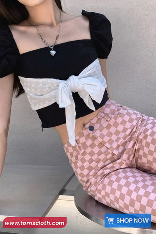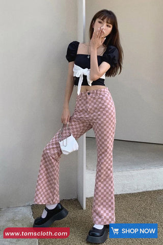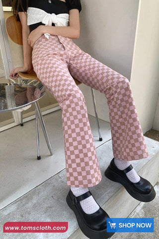 Buy Casual Pink Checkered Slim Flare Long Pants from Tomscloth for your outfit of the day. This item is in stock and ready to order. Enjoy 10% discount with using this code: TOMS_MANIA .