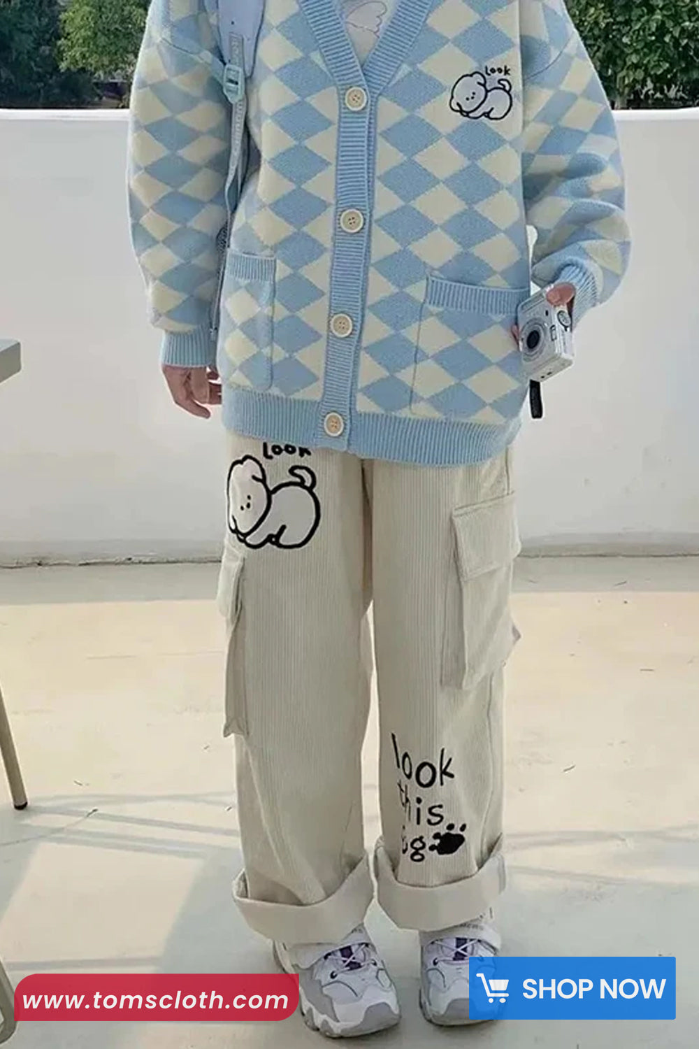 Buy Cute Puppy Embroidered Cargo Pockets Corduroy Pants from Tomscloth for your outfit of the day. This item is in stock and ready to order. Enjoy 10% discount with using this code: TOMS_MANIA .