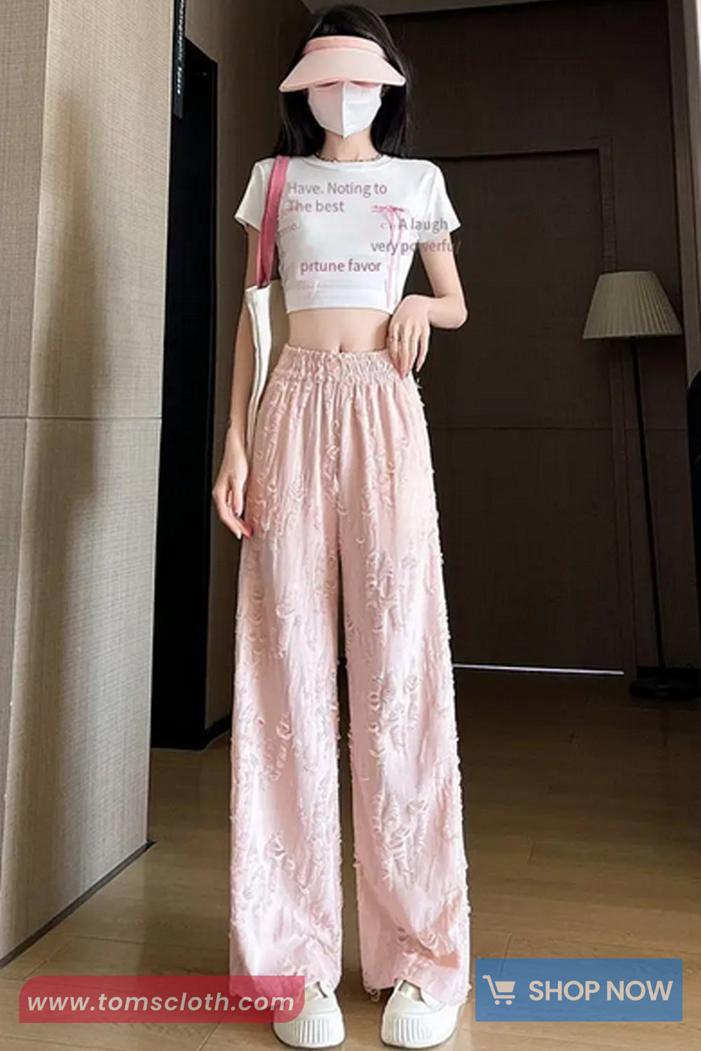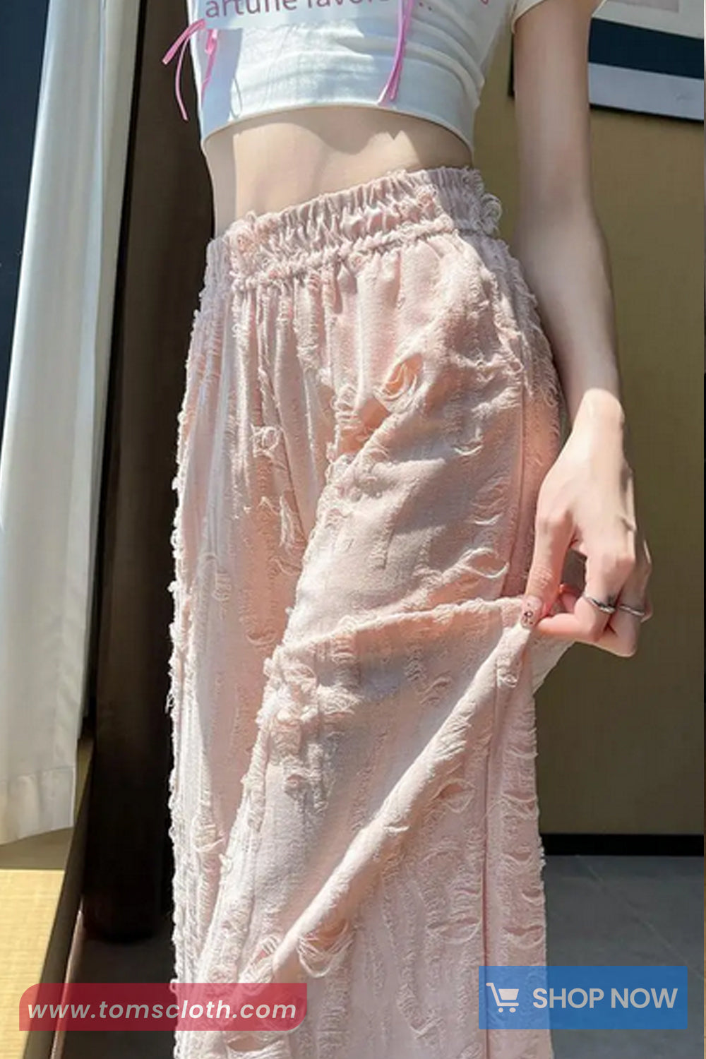 Buy Elastic Waist Distressed Style Casual Pants from Tomscloth for your outfit of the day. This item is in stock and ready to order. Enjoy 10% discount with using this code: TOMS_MANIA .