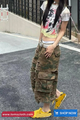 Buy High Waist Camouflage Pattern Cargo Ripped Pants from Tomscloth for your outfit of the day. This item is in stock and ready to order. Enjoy 10% discount with using this code: TOMS_MANIA .