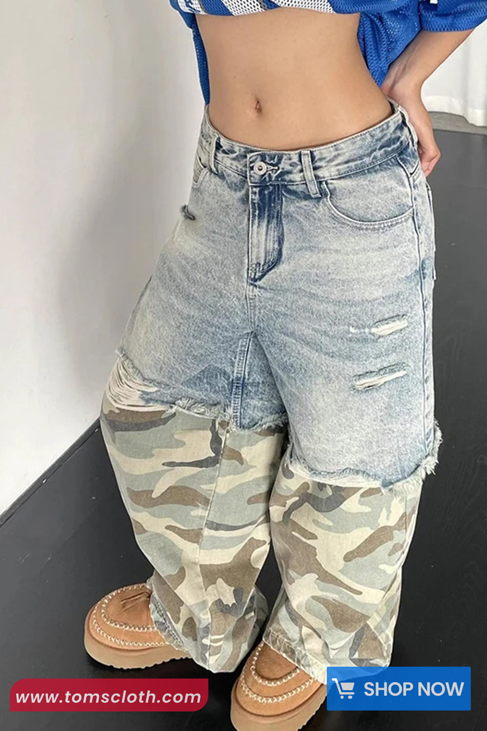 Buy High Waist Camouflage Stitched Jeans Pants from Tomscloth for your outfit of the day. This item is in stock and ready to order. Enjoy 10% discount with using this code: TOMS_MANIA .