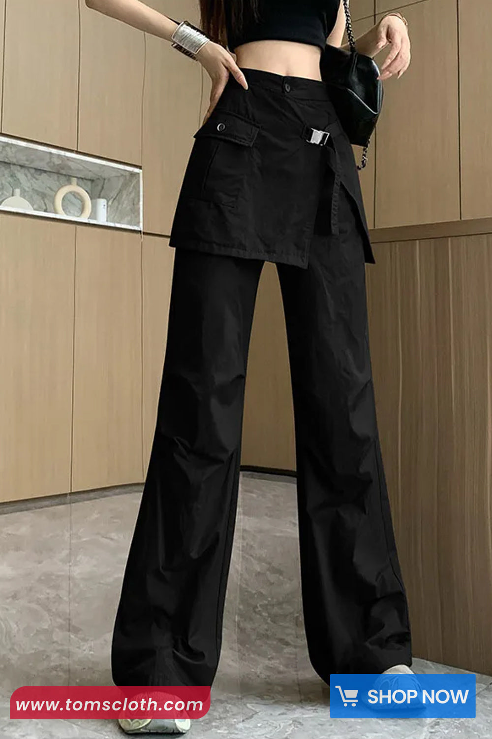 High Waist Casual Buckle Irregular Style Long Pants – Tomscloth