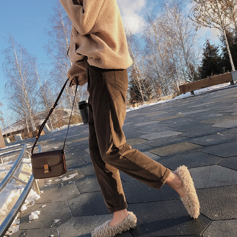 High Waist Casual Corduroy Long Pants