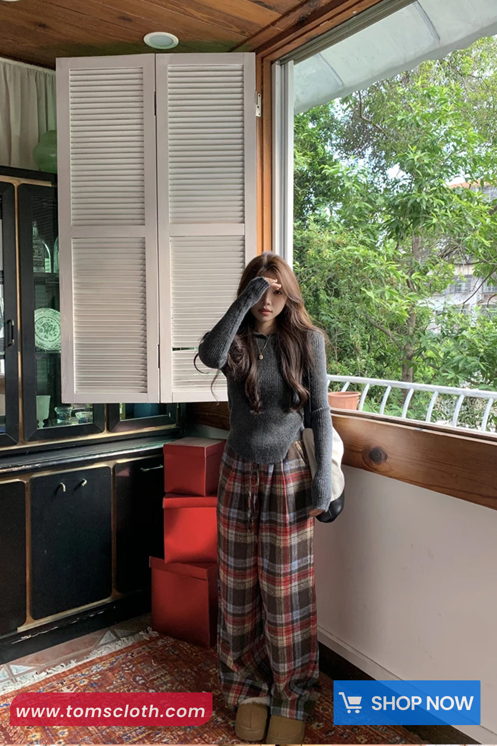 High Waist Elastic Retro Plaid Colors Loose Pants – Tomscloth