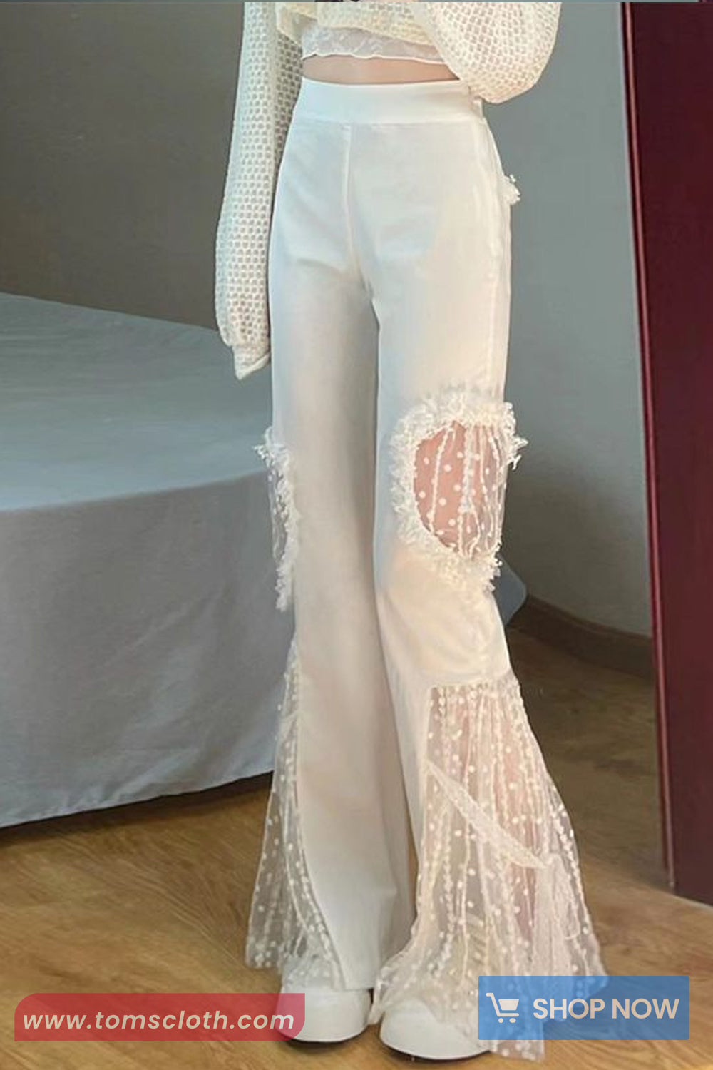 Buy High Waist Lace Transparent Casual Long Pants from Tomscloth for your outfit of the day. This item is in stock and ready to order. Enjoy 10% discount with using this code: TOMS_MANIA .