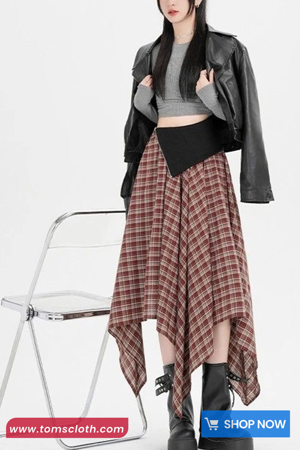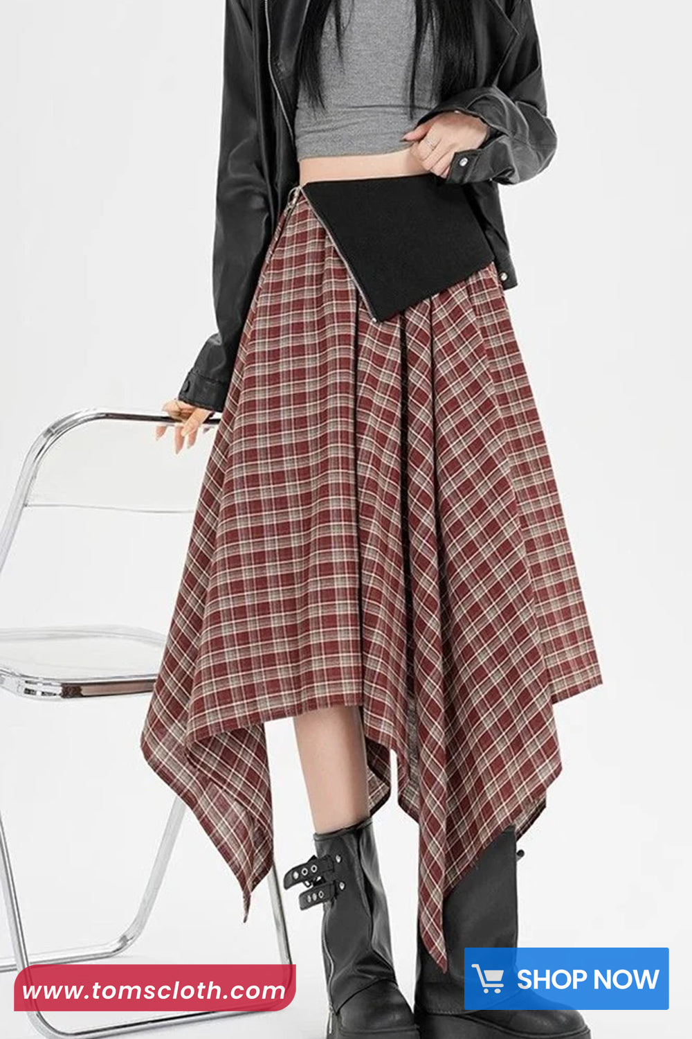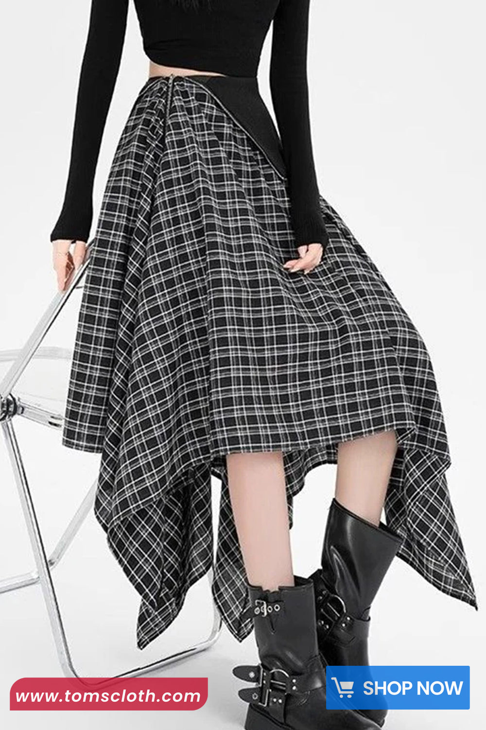 High Waist Loose A-Line Irregular Style Plaid Skirts – Tomscloth