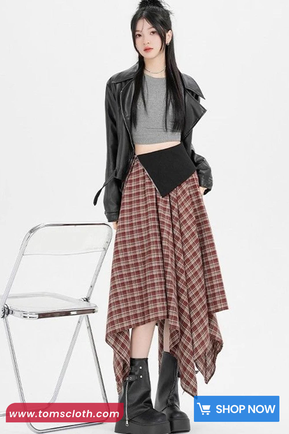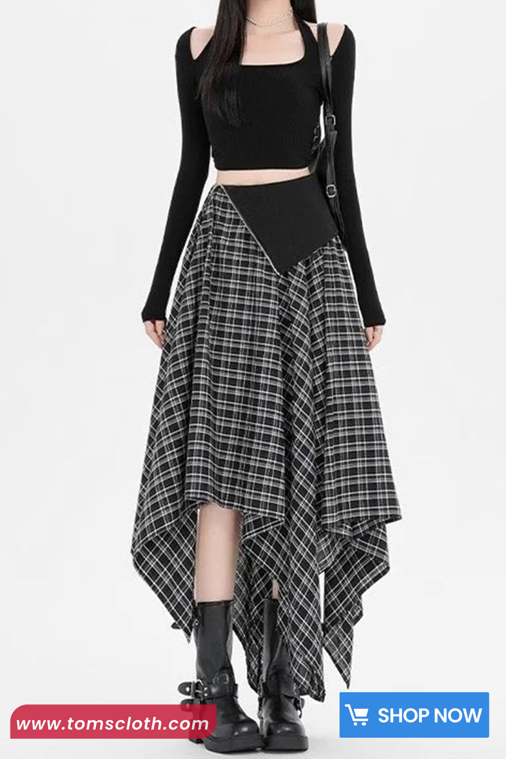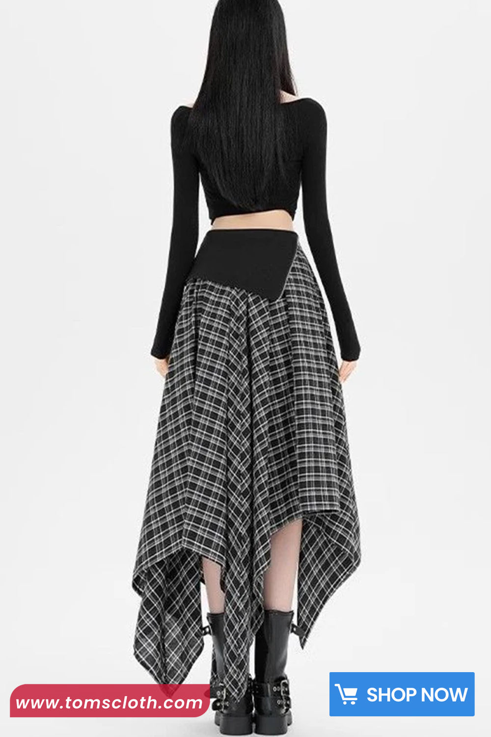 High Waist Loose A-Line Irregular Style Plaid Skirts – Tomscloth