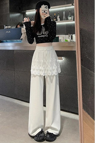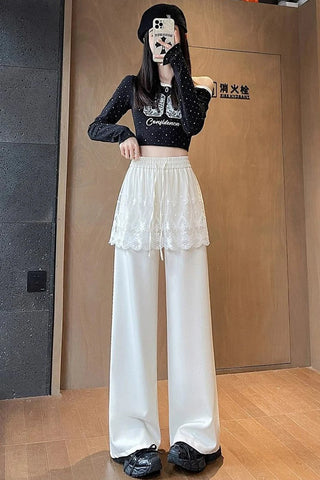 Buy High Waist Loose Pants Combined Sweet Lace from Tomscloth for your outfit of the day. This item is in stock and ready to order. Enjoy 10% discount with using this code: TOMS_MANIA .