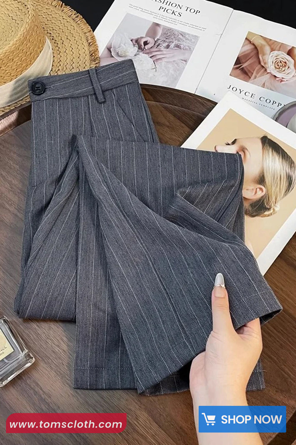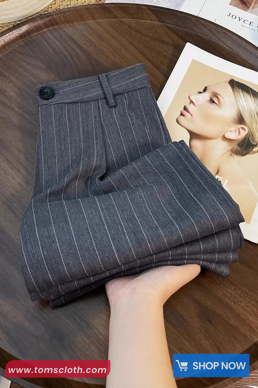 High Waist Loose Striped Elegant Office Pants – Tomscloth