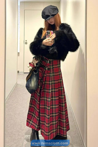 Buy High Waist Mid Length A-Line Red Plaid Skirts from Tomscloth for your outfit of the day. This item is in stock and ready to order. Enjoy 10% discount with using this code: TOMS_MANIA .