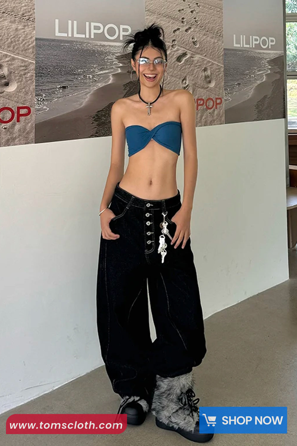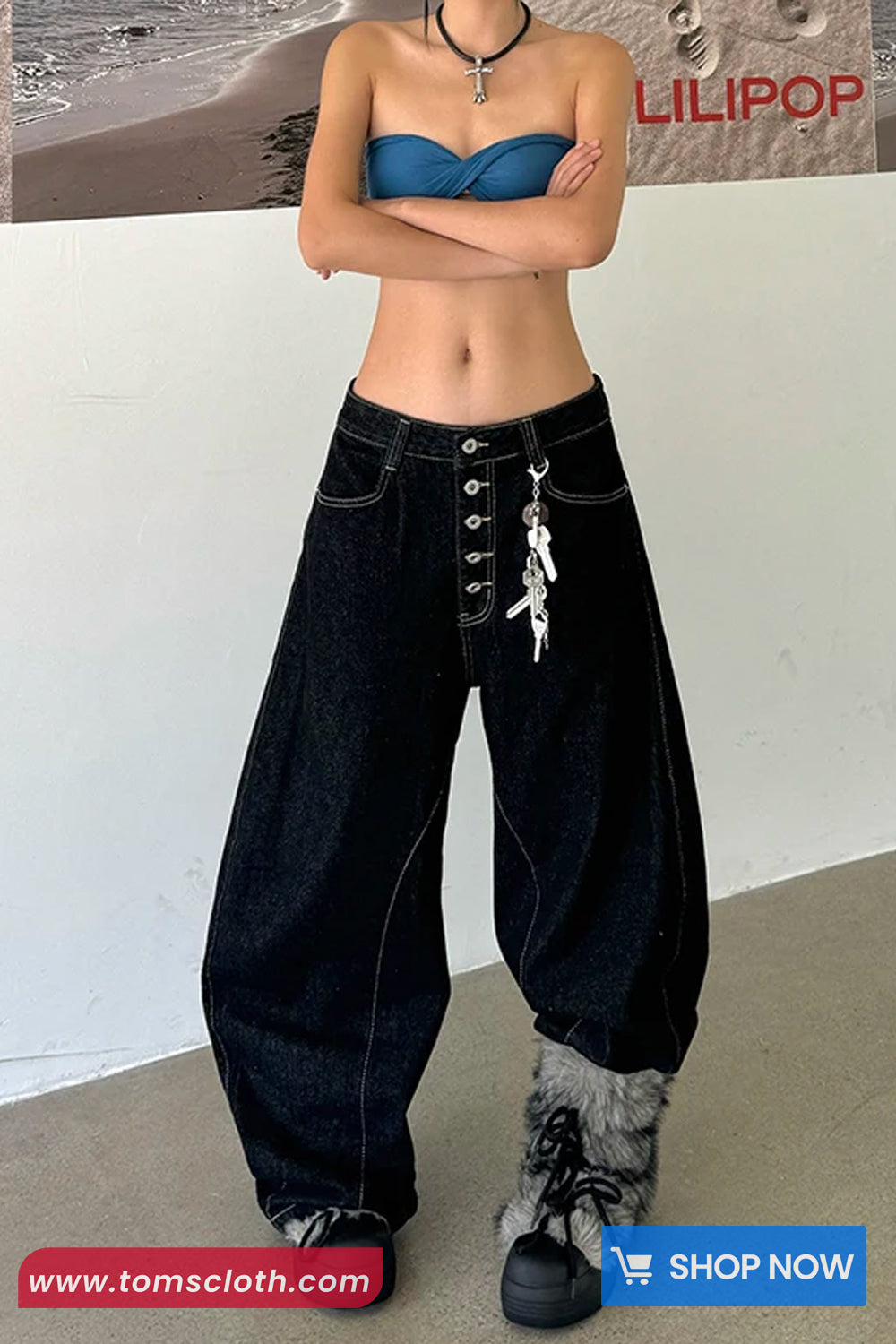 Buy High Waist Retro Loose Wide Leg Black Jeans Pants from Tomscloth for your outfit of the day. This item is in stock and ready to order. Enjoy 10% discount with using this code: TOMS_MANIA .