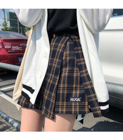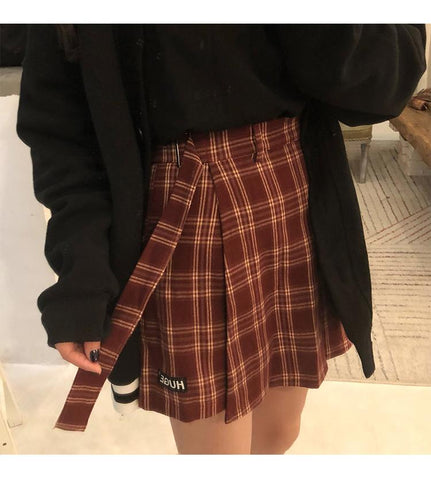 High Waist Vintage Plaid Irregular Mini Skirt