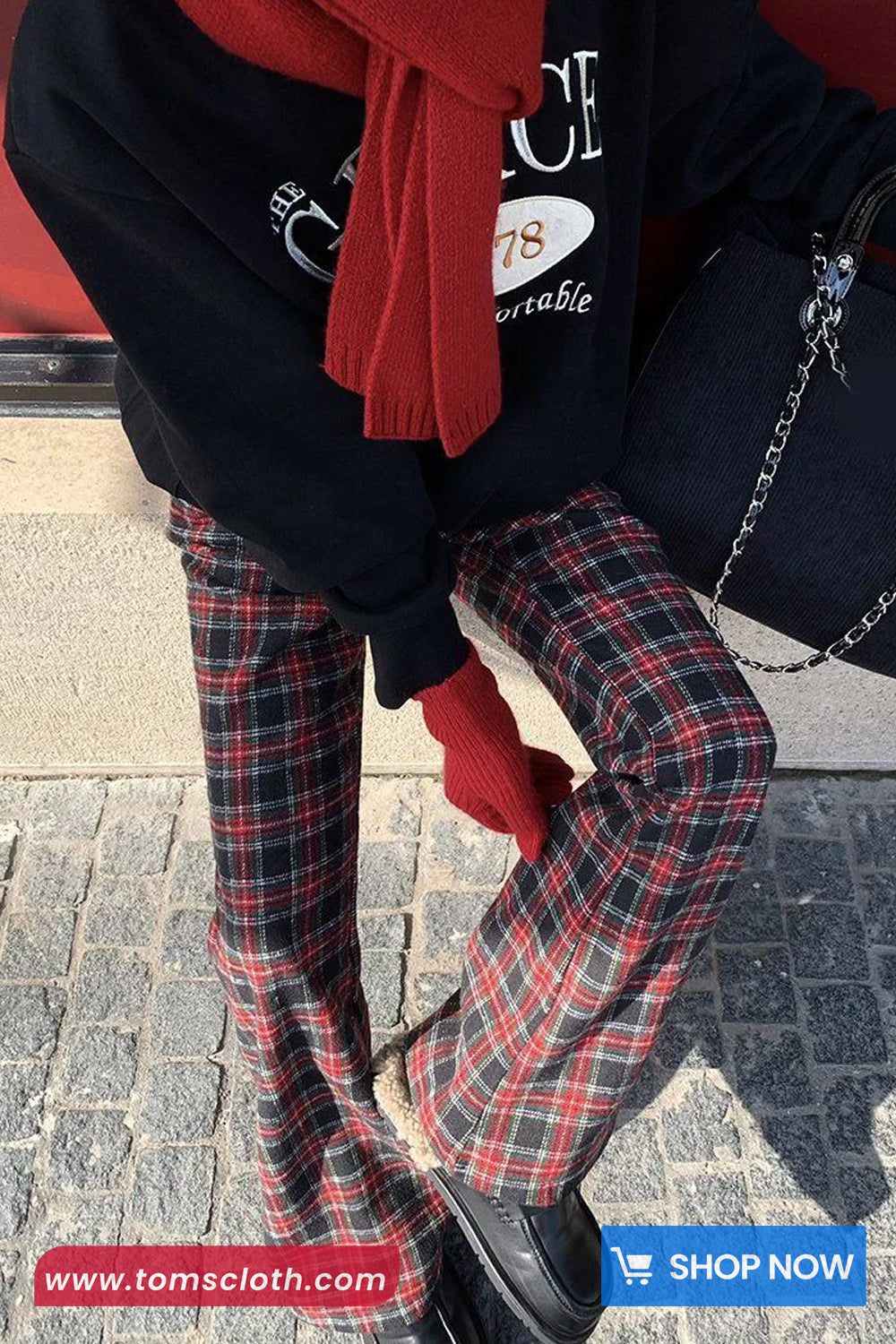 Buy High Waist Vintage Plaid Pattern Flare Pants from Tomscloth for your outfit of the day. This item is in stock and ready to order. Enjoy 10% discount with using this code: TOMS_MANIA .