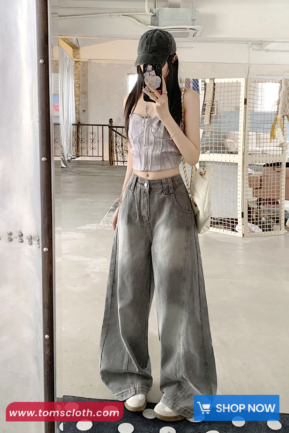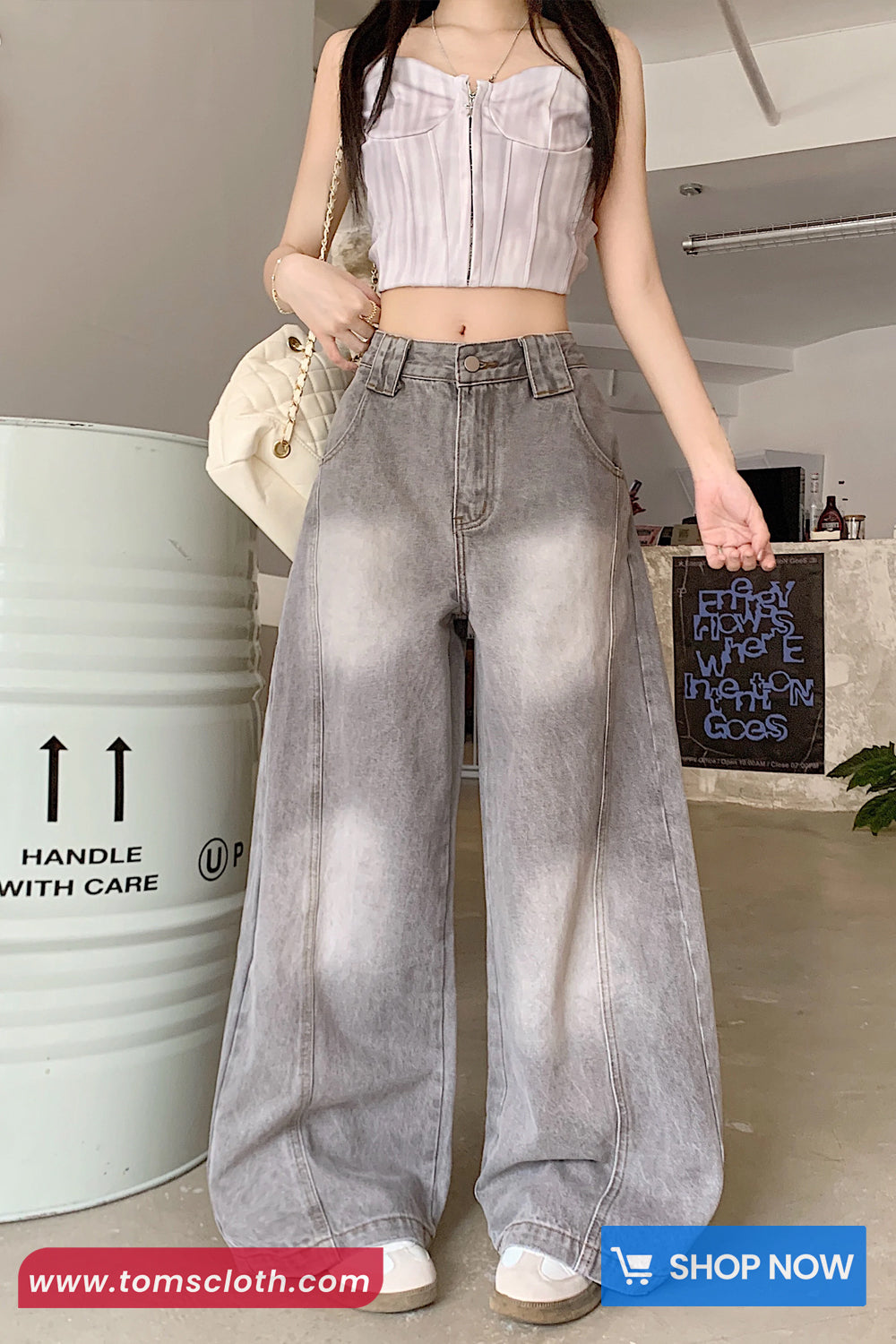 Buy High Waist Vintage Washed Grey Jeans Pants from Tomscloth for your outfit of the day. This item is in stock and ready to order. Enjoy 10% discount with using this code: TOMS_MANIA .