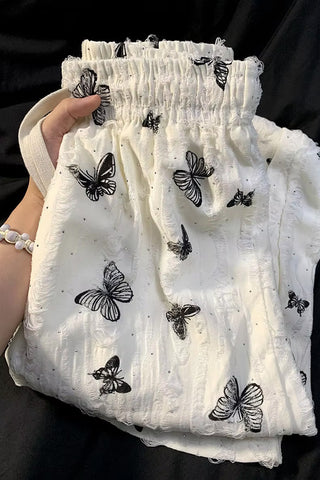 Buy Loose Butterfly Embroidered Pattern Aesthetic Long Pants from Tomscloth for your outfit of the day. This item is in stock and ready to order. Enjoy 10% discount with using this code: TOMS_MANIA .