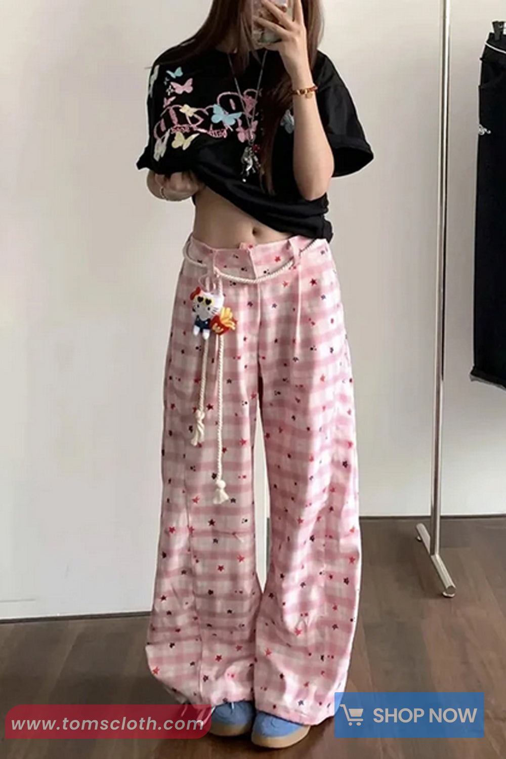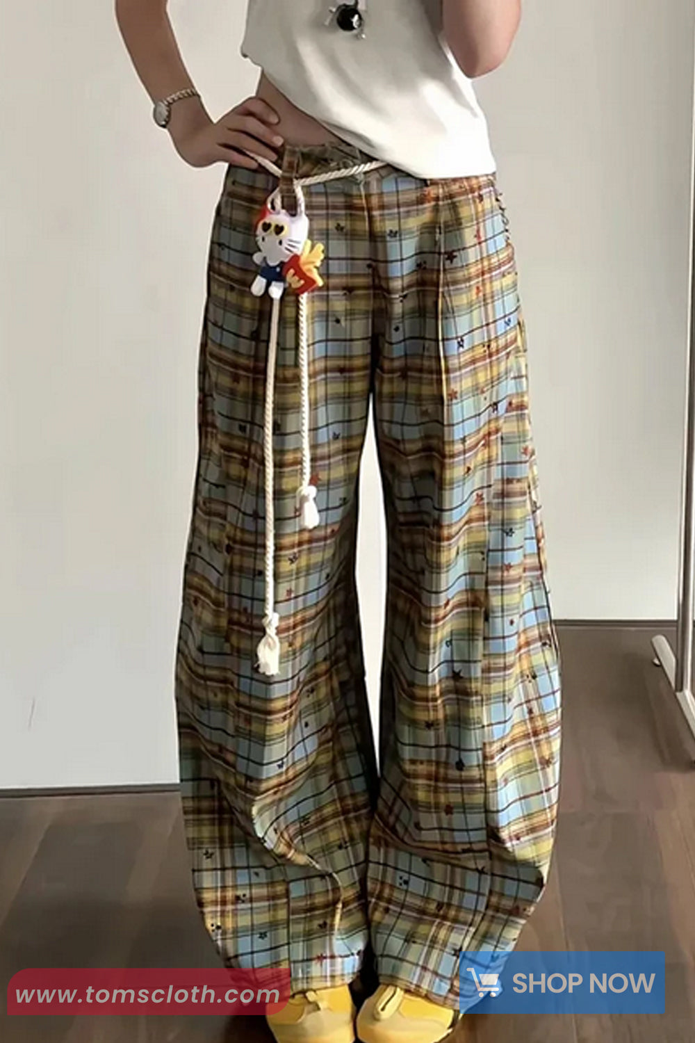 Buy Loose Retro Plaid Stars Pattern Wide Leg Pants from Tomscloth for your outfit of the day. This item is in stock and ready to order. Enjoy 10% discount with using this code: TOMS_MANIA .