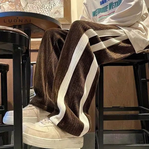 Buy Loose Two Bar Striped Long Corduroy Pants from Tomscloth for your outfit of the day. This item is in stock and ready to order. Enjoy 10% discount with using this code: TOMS_MANIA .