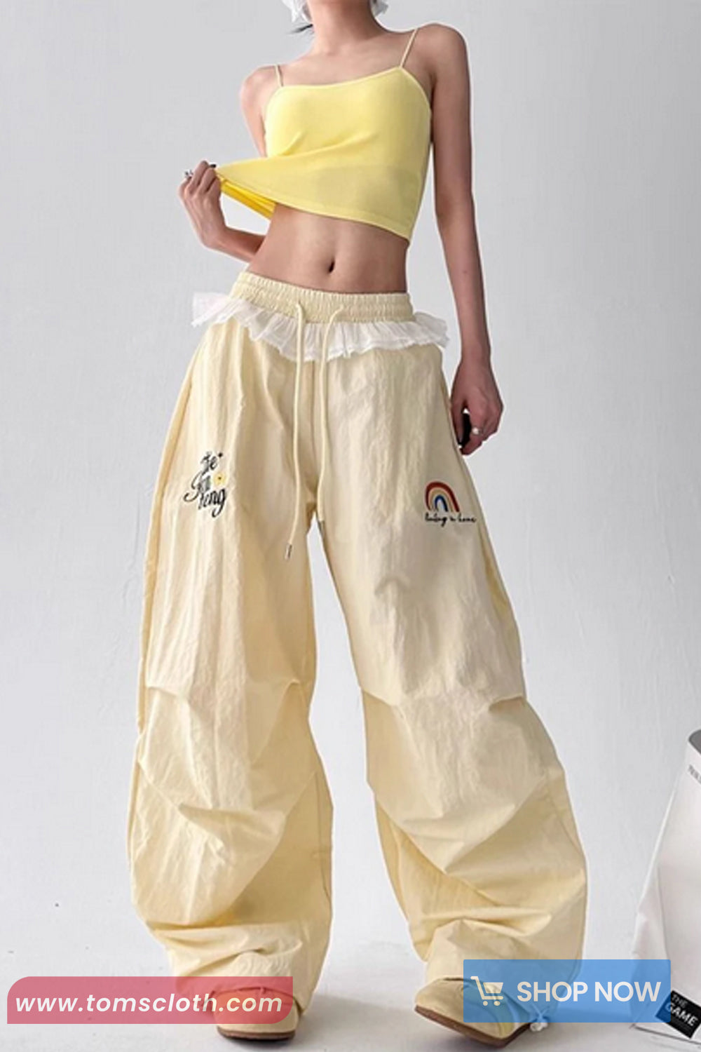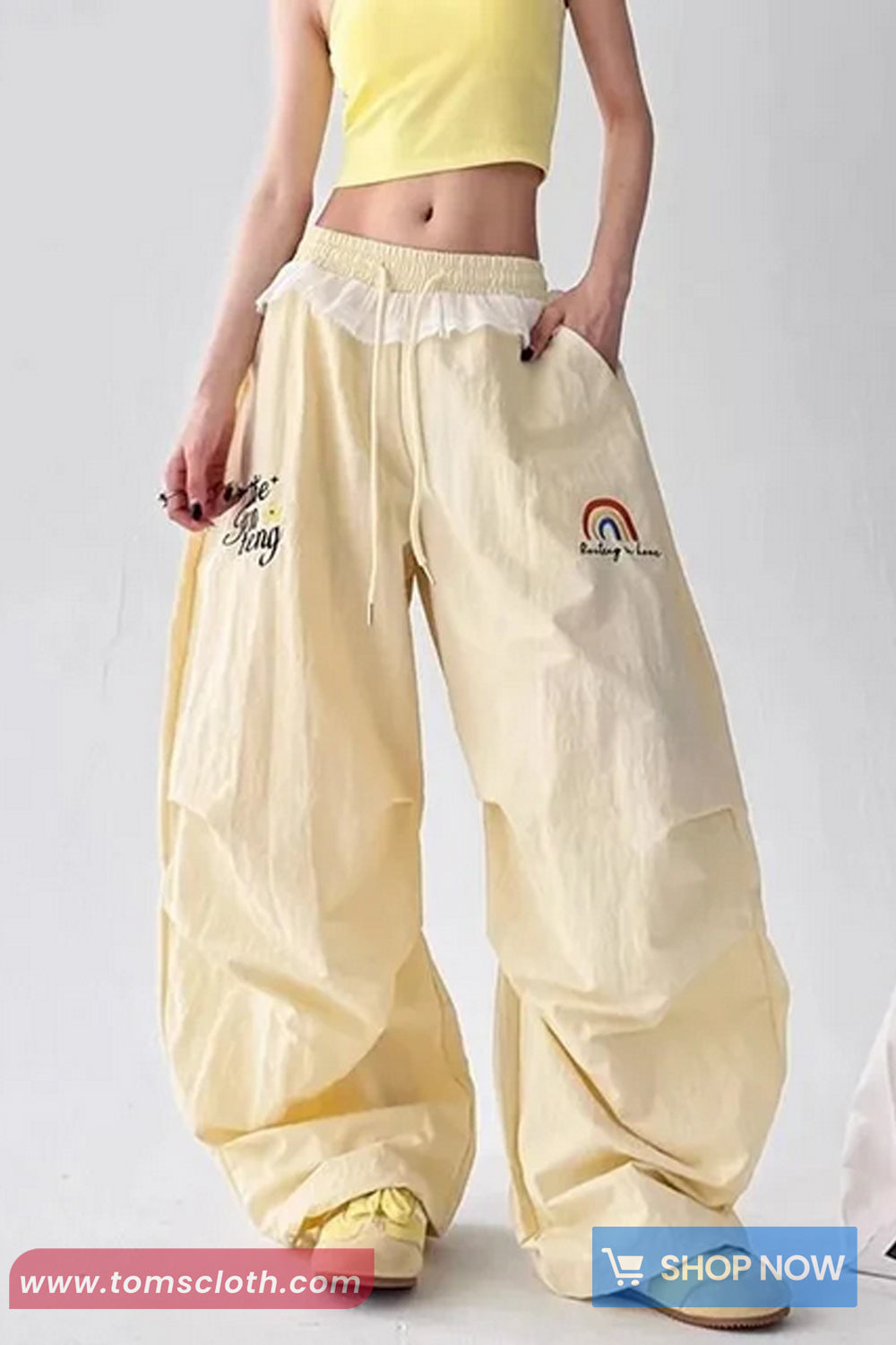 Buy Loose Wide Leg Cute Rainbow Lace Drawstring Pants from Tomscloth for your outfit of the day. This item is in stock and ready to order. Enjoy 10% discount with using this code: TOMS_MANIA .