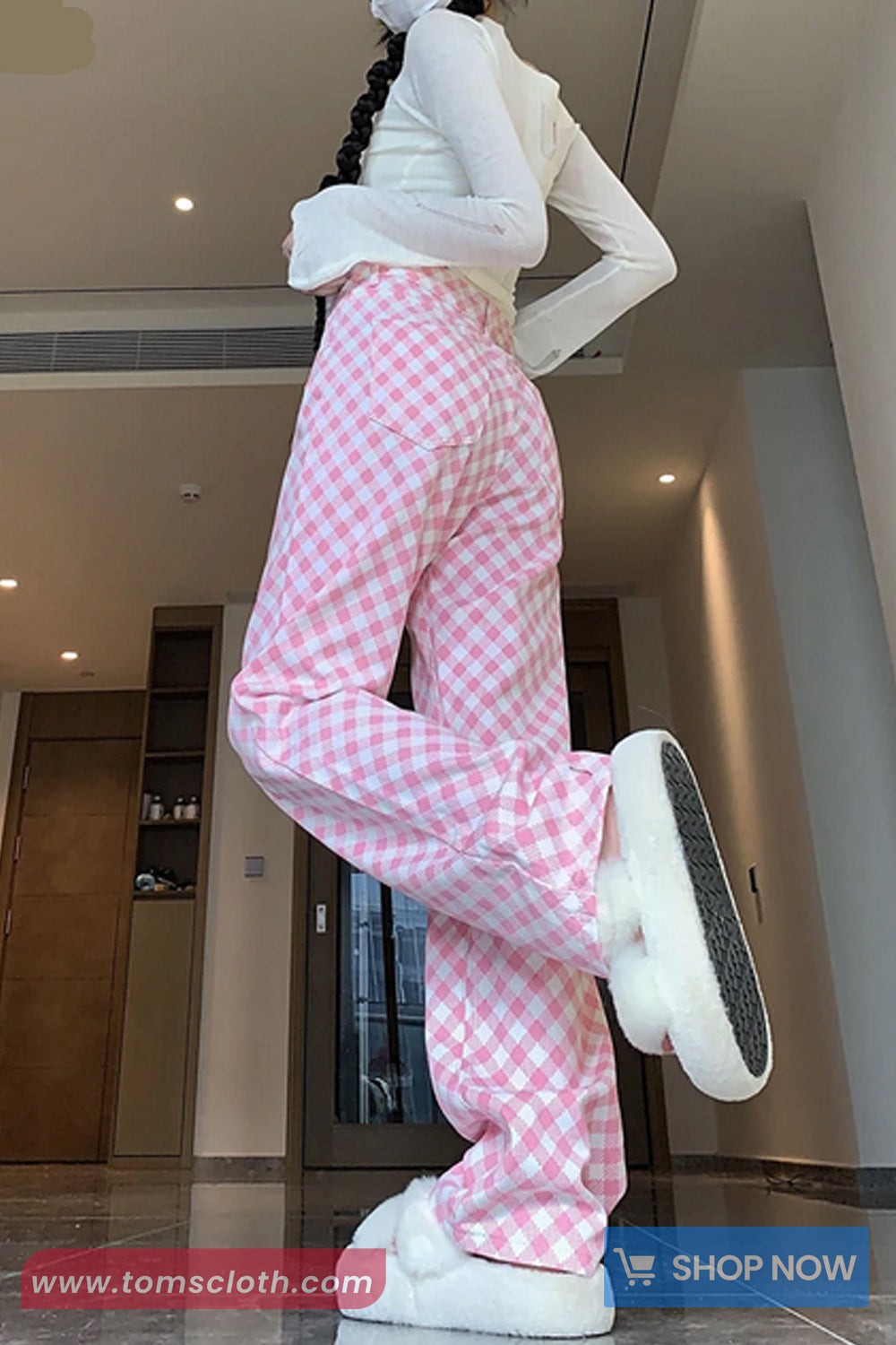Buy Retro Pink Plaid Casual Long Pants from Tomscloth for your outfit of the day. This item is in stock and ready to order. Enjoy 10% discount with using this code: TOMS_MANIA .