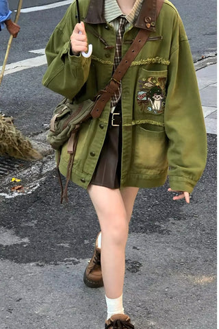 Buy Long Sleeve Cartoon Embroidered Turn Down Collar Jacket from Tomscloth for your outfit of the day. This item is in stock and ready to order. Enjoy 10% discount with using this code: TOMS_MANIA .