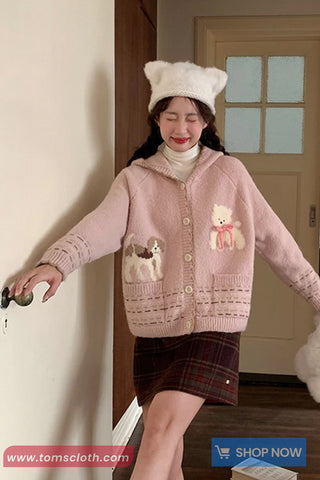 Buy Long Sleeve Cute Dog Pattern Hooded Cardigan Sweater from Tomscloth for your outfit of the day. This item is in stock and ready to order. Enjoy 10% discount with using this code: TOMS_MANIA .