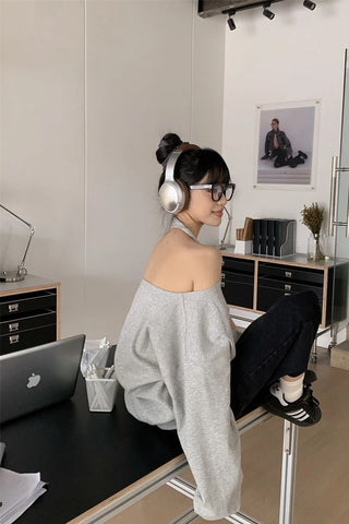 Buy Long Sleeve Sexy Off Shoulder Halter Neck Sweatshirt from Tomscloth for your outfit of the day. This item is in stock and ready to order. Enjoy 10% discount with using this code: TOMS_MANIA .
