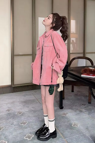 Buy Long Sleeve Turn Down Collar Pink Corduroy Jacket from Tomscloth for your outfit of the day. This item is in stock and ready to order. Enjoy 10% discount with using this code: TOMS_MANIA .