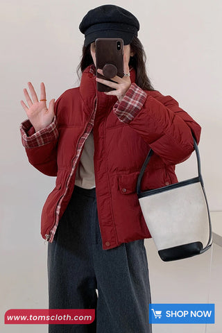 Buy Plaid Sided Patchwork Puffer Winter Coat Jacket from Tomscloth for your outfit of the day. This item is in stock and ready to order. Enjoy 10% discount with using this code: TOMS_MANIA .