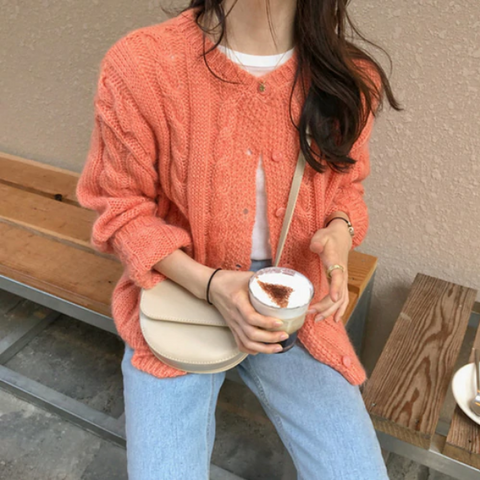 Candy Color Solid Loose Knitted Cardigan Sweater