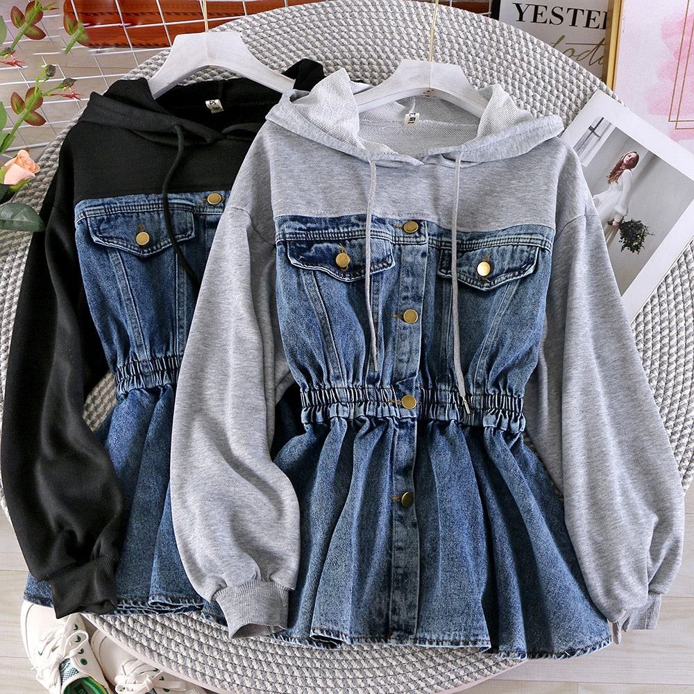 Hooded Denim Stitching Fake Two Jacket