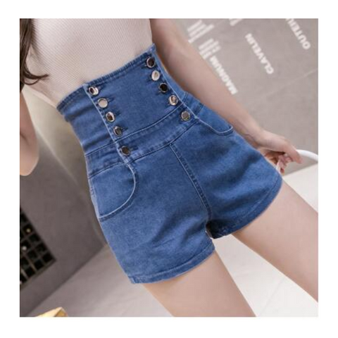 High Waist Buttons Denim Shorts