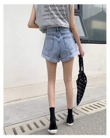 High Waist Crimping Denim Shorts Jeans