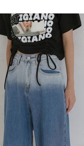 High Waist Vintage Gradient Loose Wide Leg Long Jeans