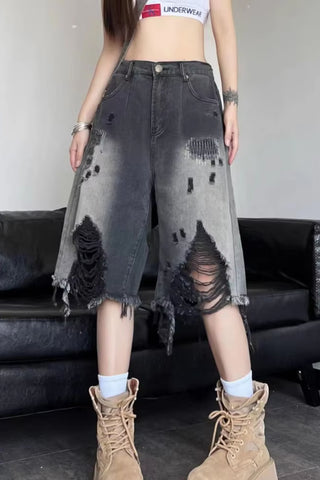 Buy Loose Hollow Out Distressed Black Denim Shorts from Tomscloth for your outfit of the day. This item is in stock and ready to order. Enjoy 10% discount with using this code: TOMS_MANIA .