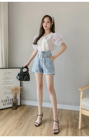 Pearl Belt Wide Leg Denim Shorts Jeans