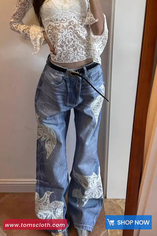 Buy High Waist Lace Bird Embroidered Retro Jeans Pants from Tomscloth for your outfit of the day. This item is in stock and ready to order. Enjoy 10% discount with using this code: TOMS_MANIA .