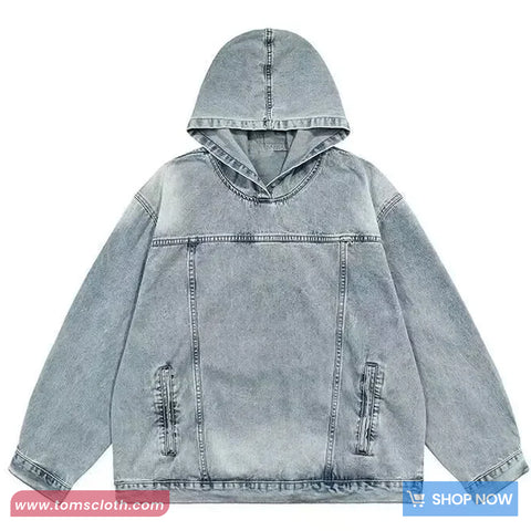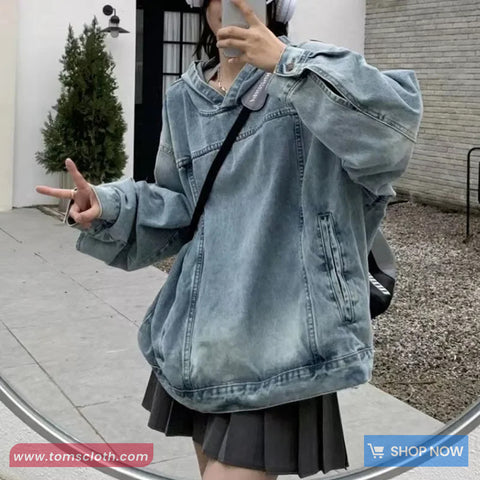 Buy Loose Vintage Hooded Denim Sweatshirt from Tomscloth for your outfit of the day. This item is in stock and ready to order. Enjoy 10% discount with using this code: TOMS_MANIA .