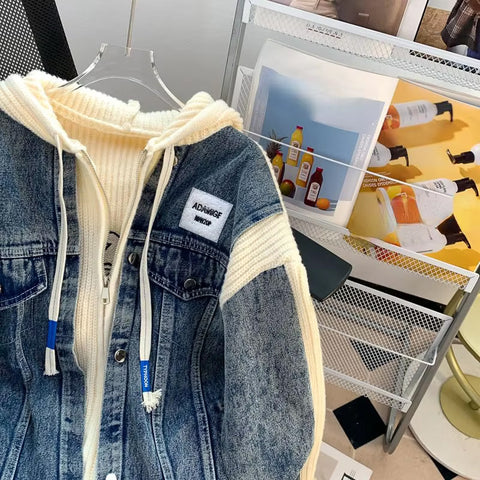 Buy Two Style Hooded Knitted Denim Jacket from Tomscloth for your outfit of the day. This item is in stock and ready to order. Enjoy 10% discount with using this code: TOMS_MANIA .