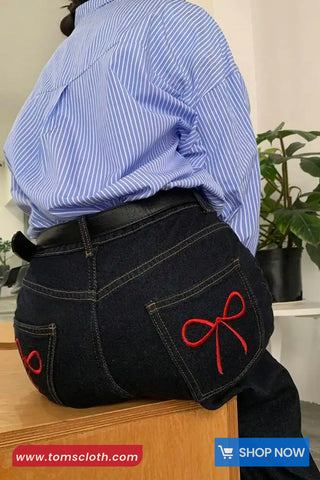 Buy Vintage Bowknot Embroidery Black Jeans Pants from Tomscloth for your outfit of the day. This item is in stock and ready to order. Enjoy 10% discount with using this code: TOMS_MANIA .