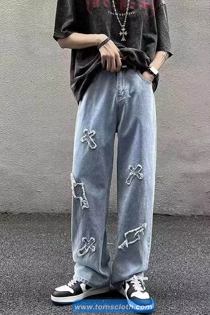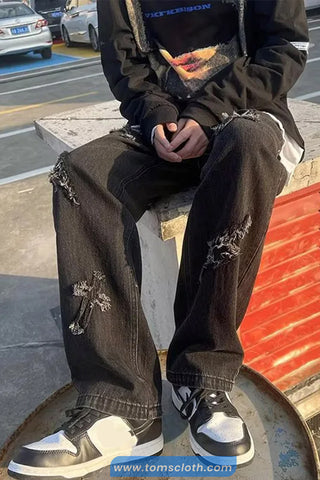 Buy Cross Embroidered Hip Hop Jeans Pants from Tomscloth for your outfit of the day. This item is in stock and ready to order. Enjoy 10% discount with using this code: TOMS_MANIA .