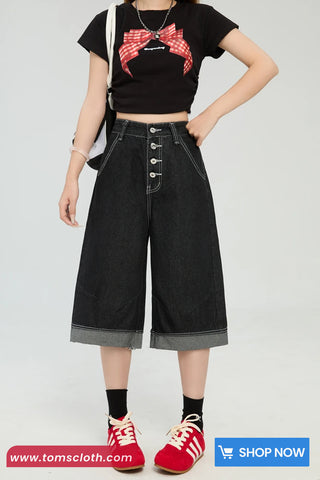 Buy High Waist Calf Length Retro Black Jeans Pants from Tomscloth for your outfit of the day. This item is in stock and ready to order. Enjoy 10% discount with using this code: TOMS_MANIA .