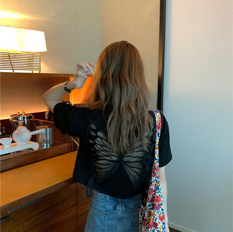 Butterfly Pattern Back Hollow Out Shirt