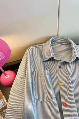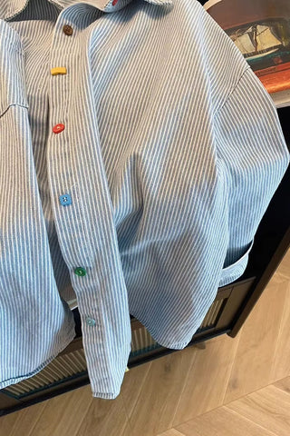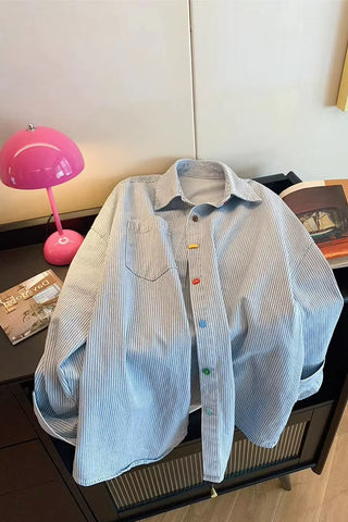 Buy Long Sleeve Colorful Buttons Striped Denim Blouse Shirt from Tomscloth for your outfit of the day. This item is in stock and ready to order. Enjoy 10% discount with using this code: TOMS_MANIA .