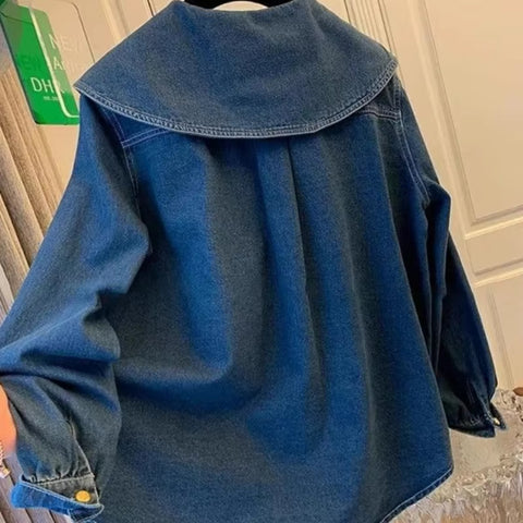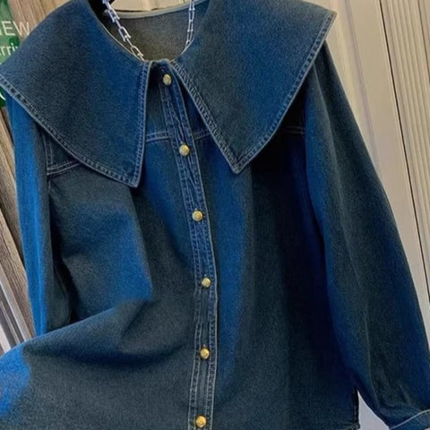 Long Sleeve Peter Pan Collar Denim Blouse Shirt