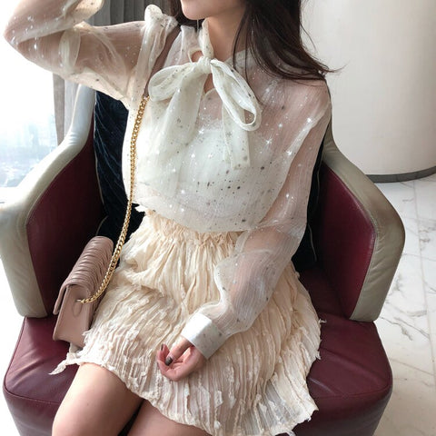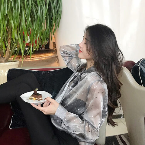 Bow Tie Shining Stars Blouse Long Sleeve Shirt