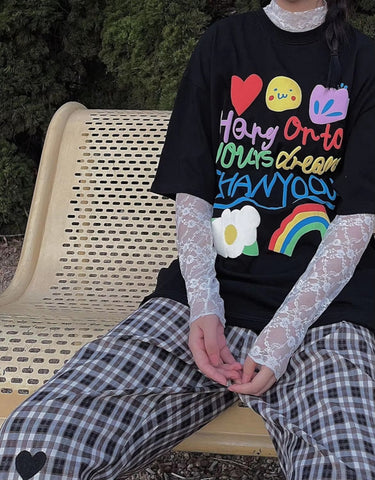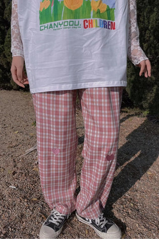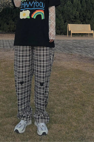Casual Heart Embroidered Long Plaid Pants