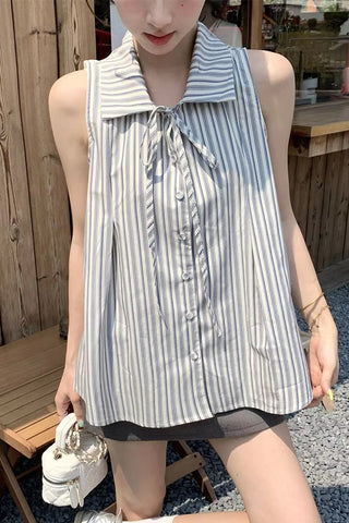 Buy Elegant Sleeveless Lace Up Striped Blouse Shirts from Tomscloth for your outfit of the day. This item is in stock and ready to order. Enjoy 10% discount with using this code: TOMS_MANIA .