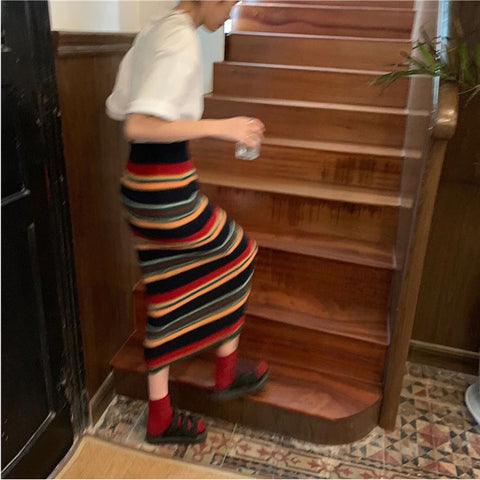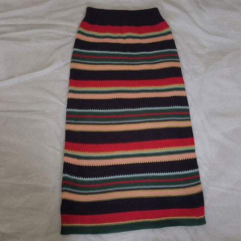 Elegant Striped Knitted A-Line Skirt