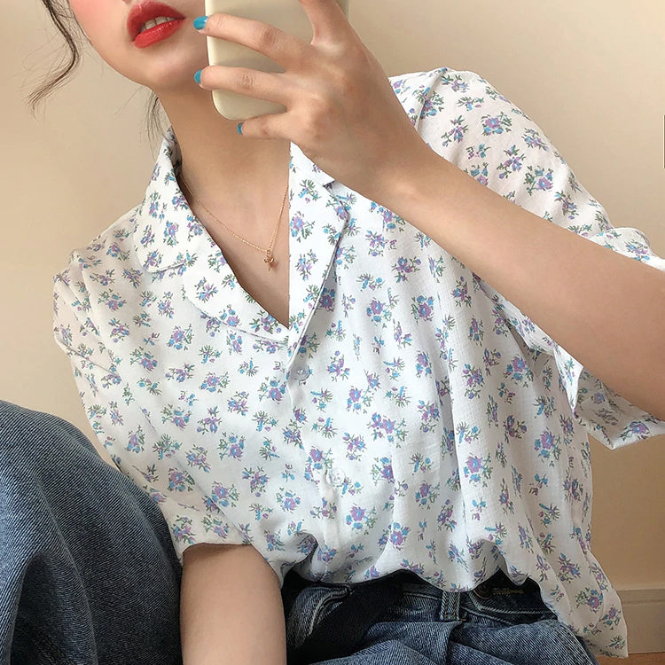 Fresh Floral V-Neck Loose Shirt